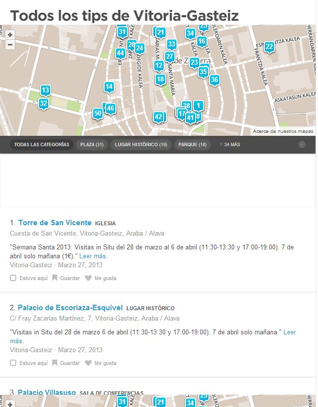 - El mapa de la ciudad con las mejores descripciones: El Ayuntamiento de Vitoria nos descubre tanto a visitantes como a paisanos todos los rincones de la ciudad gracias a Foursquare. ¡Más de 200 tips!