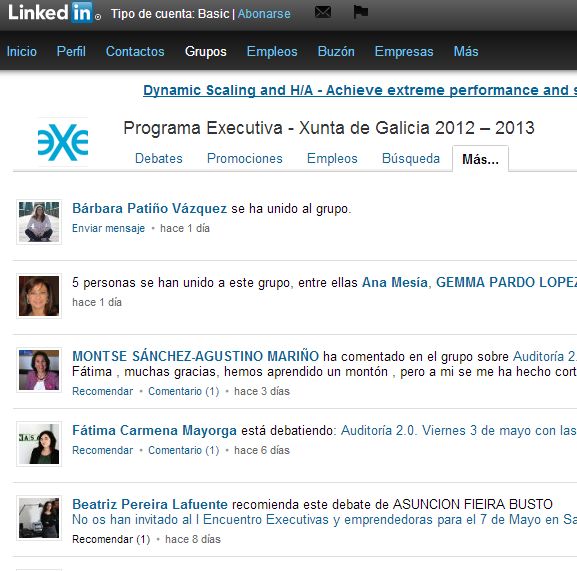 Grupos de networking: Como éste, creado en Linkedin por la Xunta de Galicia para su iniciativa Executiva, un programa que persigue el objetivo de formar a las profesionales gallegas para alcanzar puestos de liderazgo y dirección. El grupo ayuda a establecer contacto entre profesionales.