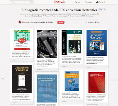 - Material del curso: Hay docentes que están utilizando Pinterest para colgar bibliografía, vídeos, y recursos de todo tipo de su asignatura o curso.