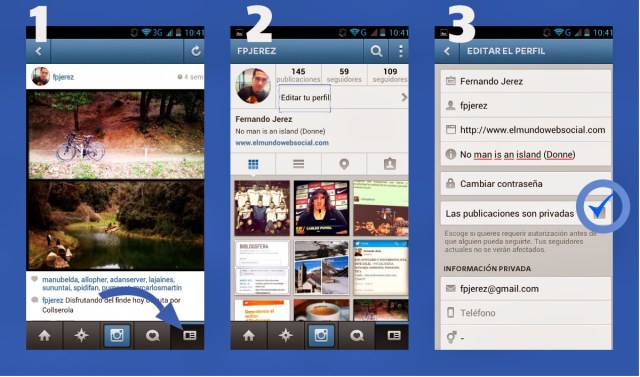 - Privado-> Sólo tus contactos pueden ver tus publicaciones. Para activarlo, sigue estos pasos: