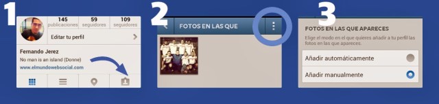 - Gestionar la visibilidad de las fotos en las que estás etiquetad@: En el perfil existe una sección con las fotos en las que te han etiquetado, que es pública salvo que tu perfil sea privado. Tienes la opción de desetiquetarte, tocando el nombre de usuario sobre la foto, o también elegir que no se añadan automáticamente, siguiendo estos pasos: