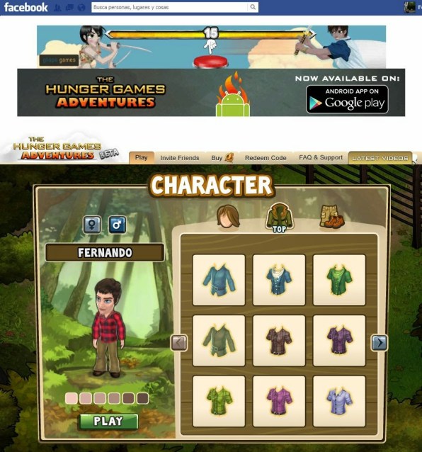 4. El juego de Facebook de «Los Juegos del Hambre»