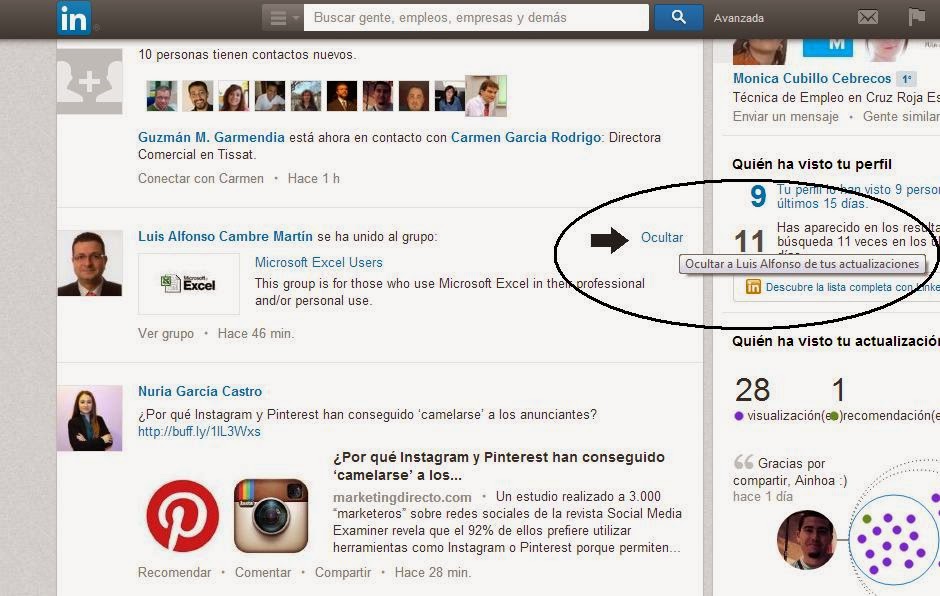 Con acciones como estas, podemos gestionar y controlar mejor todas las actualizaciones que recibimos a diario en nuestro timeline de Linkedin.