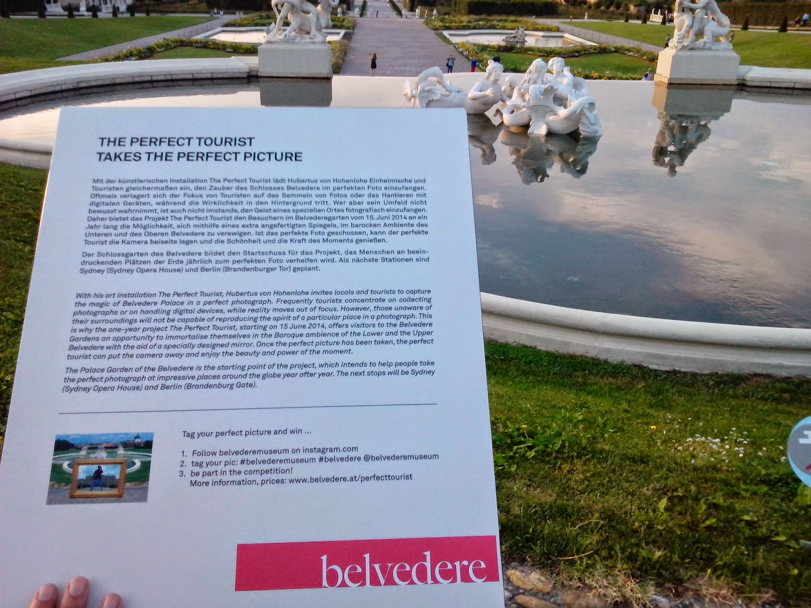 Se trataba de la instalación The Perfect Tourist, un método simple pero útil para verte y fotografiarte de forma más completa en el entorno. La iniciativa es del fotógrafo y aristócrata Hubertus von Hohenlohe, que instaló el mes pasado este espejo diseñado especialmente para tomar la imagen deseada y, según su idea, que el turista se pueda concentrar mejor en disfrutar del momento de encontrarse en ese bonito entorno especialmente interesante también desde el punto de vista arquitectónico y cultural.