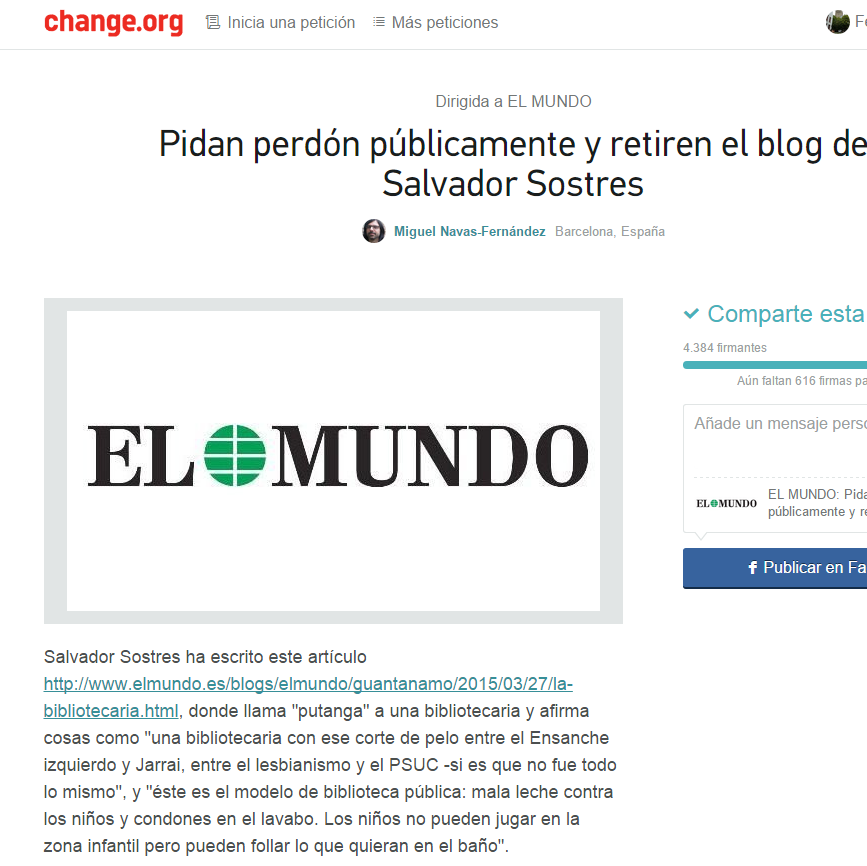 | Iniciativa reciente de parte de la comunidad bibliotecaria en respuesta a un denigrante artículo de opinión en el diario El Mundo |