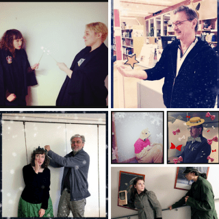 | Fotografías tomadas del Facebook de la biblioteca pública de Örebro. Los usuarios tienen que adivinar qué libro representan los bibliotecarios en cada escena |