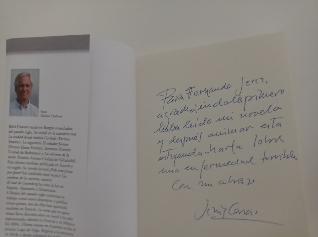 Agradecer a Raquel Moreno, psicóloga de la asociación y presentadora del acto, y a Rosa Mª García y el resto de los miembros de la directiva por contar conmigo para esta actividad. Y, por supuesto, al autor Jesús Carazo por la maravillosa conversación.
